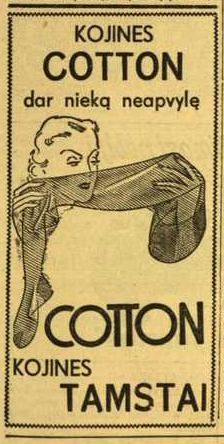 ![]() Tema: Senos reklamos Metai: 1938 Šaltinis: „Lietuvos ūkininkas“ Tekstas: KOJINĖS COTTON dar nieką neapvylė COTTON KOJINĖS TAMSTAI Daugiau senų reklamų | Senos Vilniaus nuotraukos Kitos senos reklamos