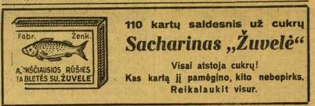 ![]() Tema: Senos reklamos Metai: 1934 Šaltinis: „Lietuvos ūkininkas“ Tekstas: 110 kartų saldesnis už cukrų Sacharinas „Žuvelė“ Visai atstoja cukrų! Kas kartą jį pamėgino, kito nebepirks. Reikalaukit visur. Daugiau senų reklamų | Senos Vilniaus nuotraukos Kitos senos reklamos