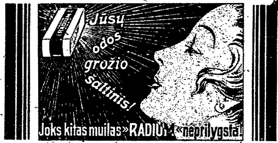 ![]() Tema: Senos reklamos Metai: 1935 Šaltinis: „Geležinkelininkas“ Tekstas: Jūsų odos grožio šaltinis Joks kitas muilas RADIUM neprilygsta Daugiau senų reklamų | Senos Vilniaus nuotraukos Kitos senos reklamos